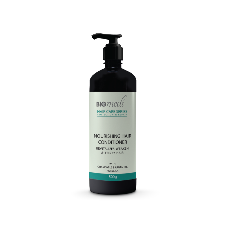 Apply BIOMEDI Nourishing Hair Conditioner to the mid-lengths and ends of your hair, avoiding the scalp.