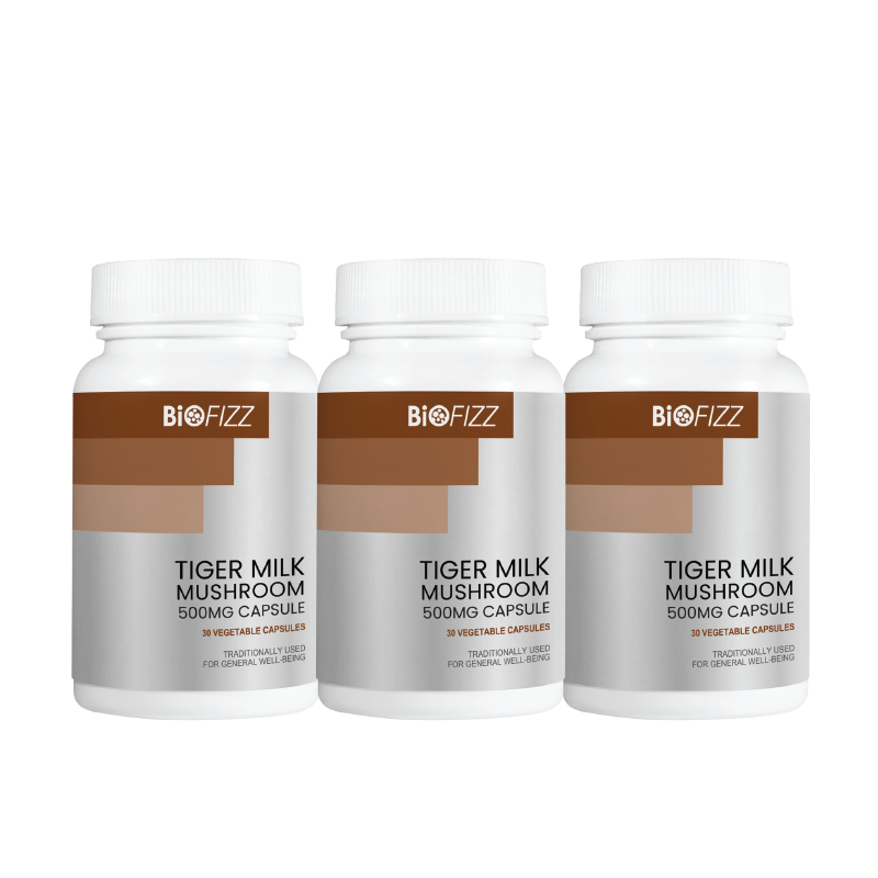 It is native to tropical forests in South East Asia, including Malaysia, Thailand, Indonesia, the Philippines, Papua New Guinea, Southern China and parts of Australia. Due to its unique growth habits, wild Tiger Milk Mushroom is rare and difficult to be found until to date. Biofizz Tiger Milk Mushroom consists of 500 mg of tiger milk mushroom. Tiger Milk Mushroom became one of the highest demand in the market more than ever at a time of Covid 19. It is traditionally used for general well-being.